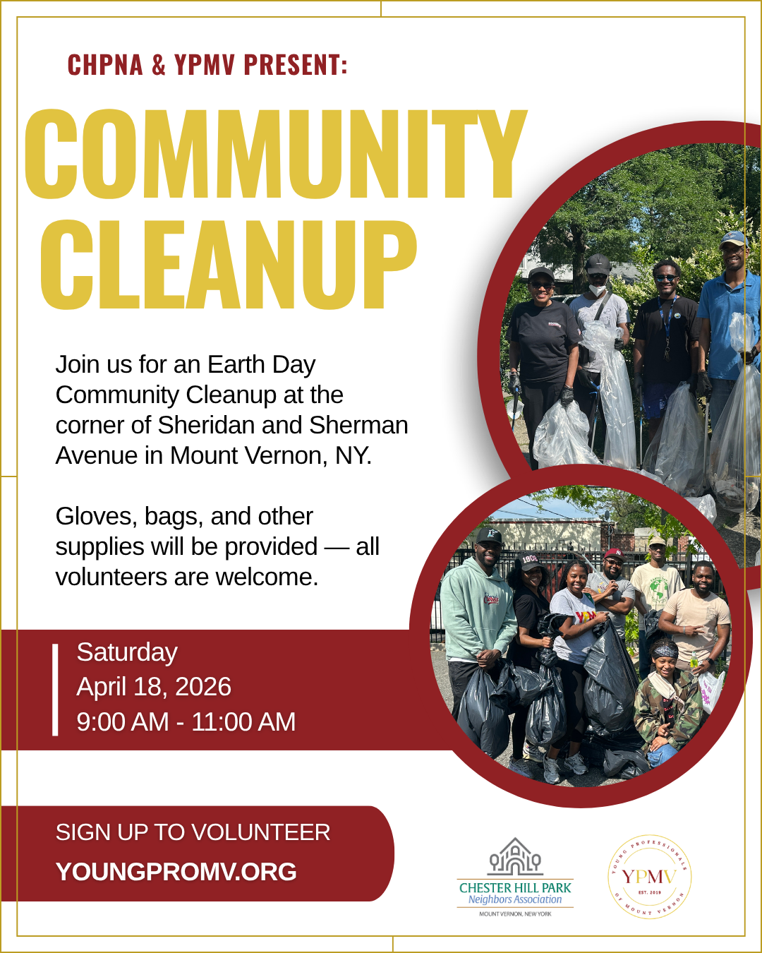 Join us for an Earth Day Community Cleanup in Mount Vernon. We’re coming together to take care of our neighborhood— bring a friend, and be part of the impact.